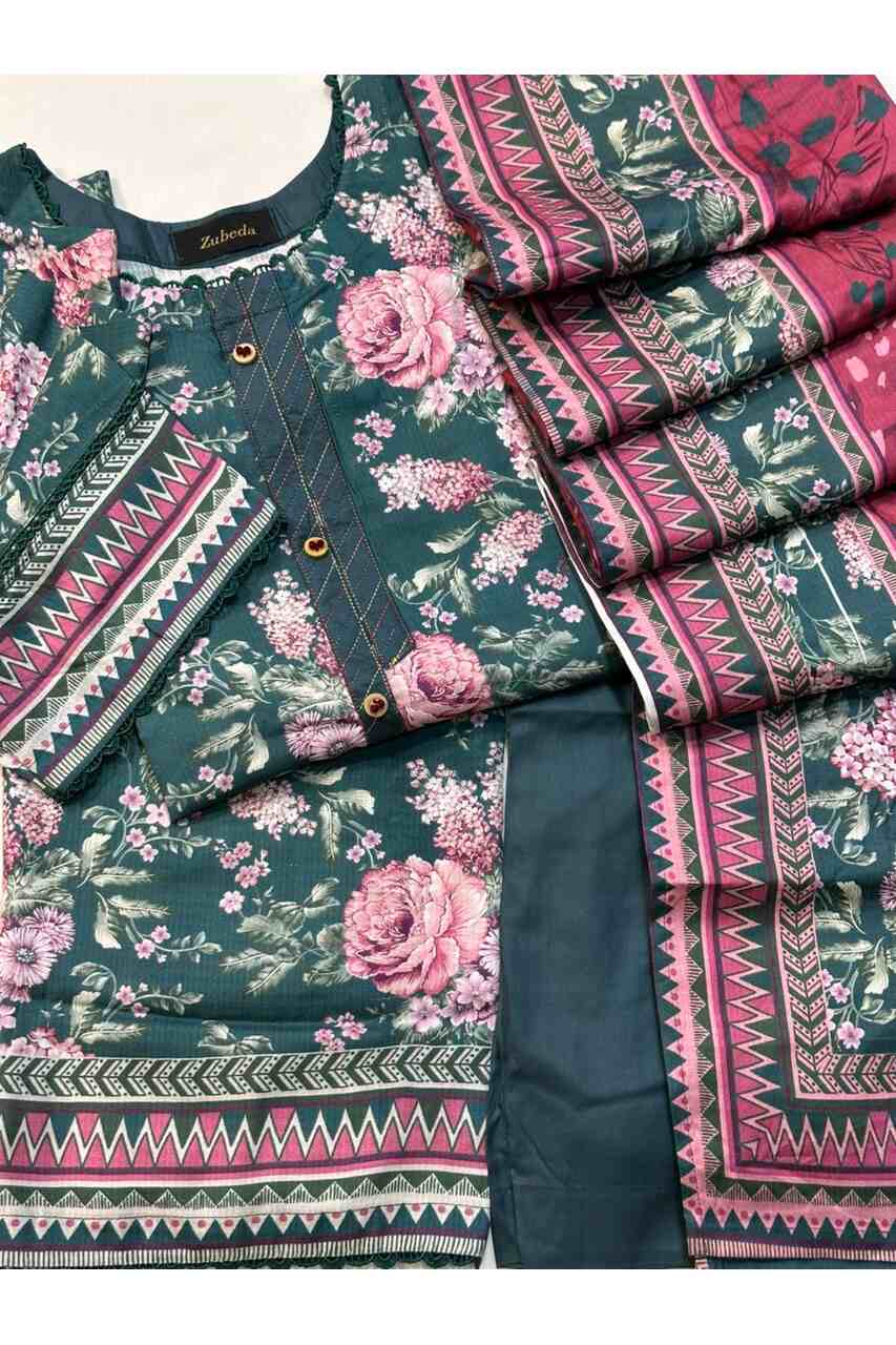 Digital printed Bamber Chiffon Dupatta with Embroidery