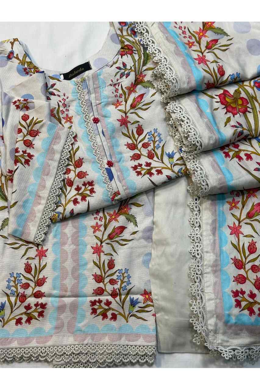 ●Premium Printed Doriya Linen Dupatta with Four Side Lace