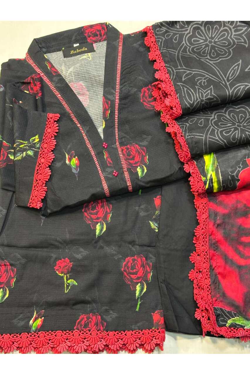 ●Premium Printed Doriya Linen Shirt with Lace