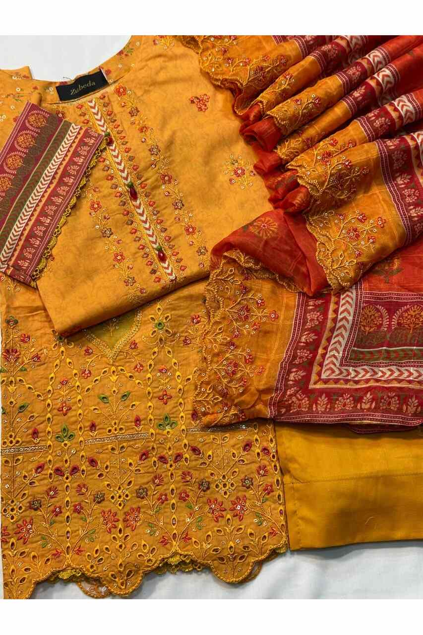 Digital printed Bamber Chiffon Dupatta with Embroidery